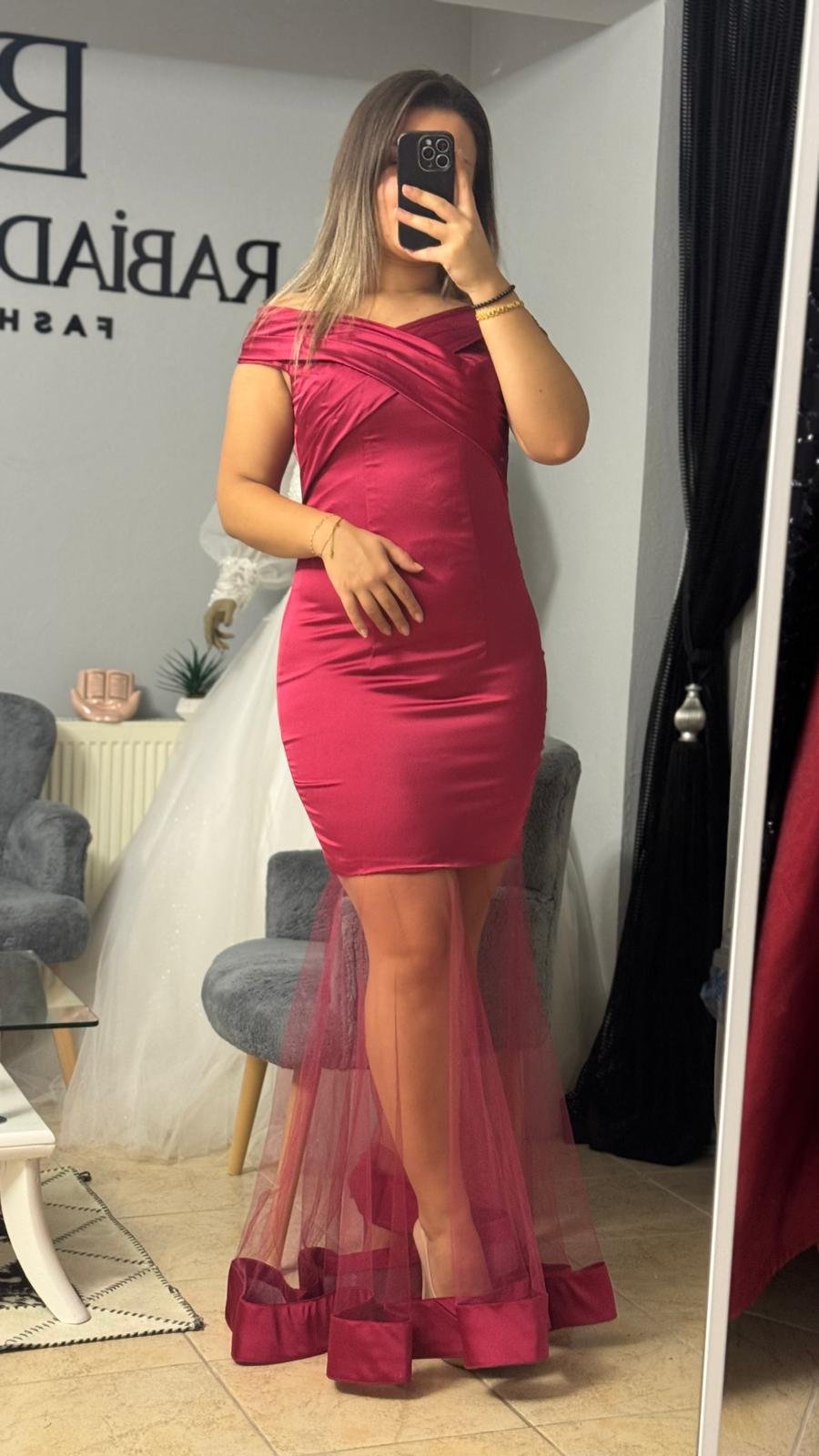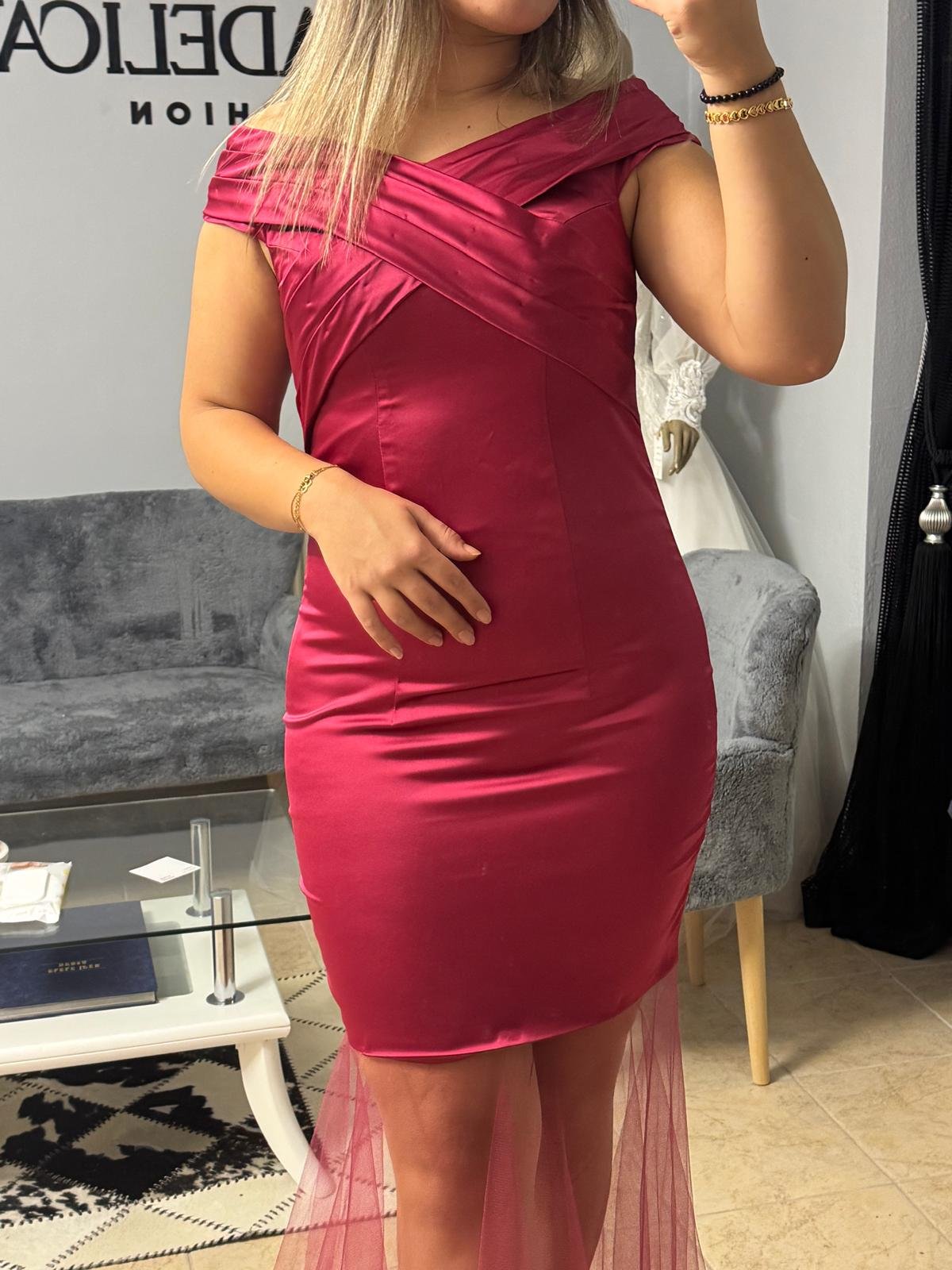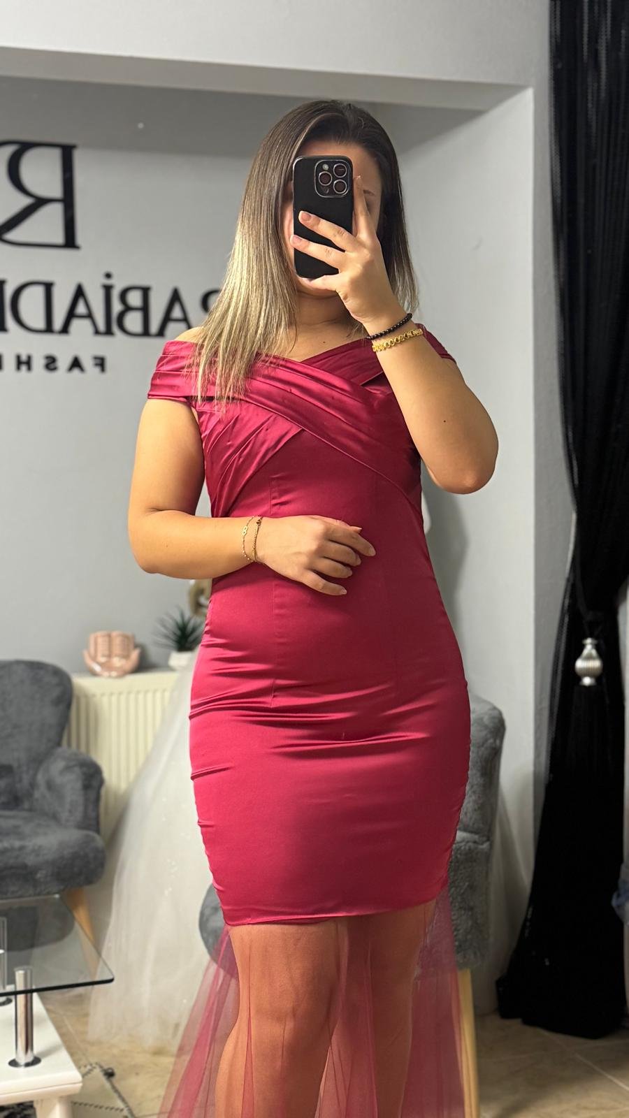 AMORE | PİLELİ HAVUZ YAKA SATEN TÜL DETAYLI BALIK ABİYE