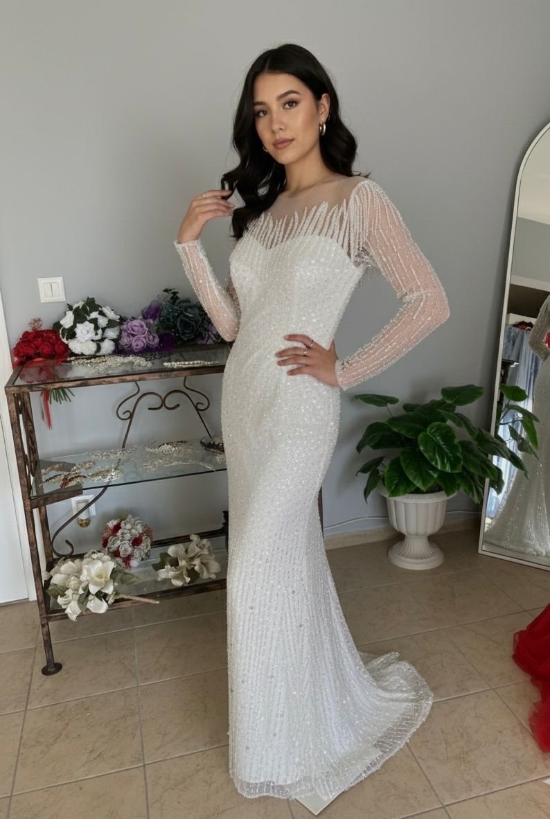 LA PERLE | İNCİ DETAYLI DANTEL İŞLEMELİ ABİYE