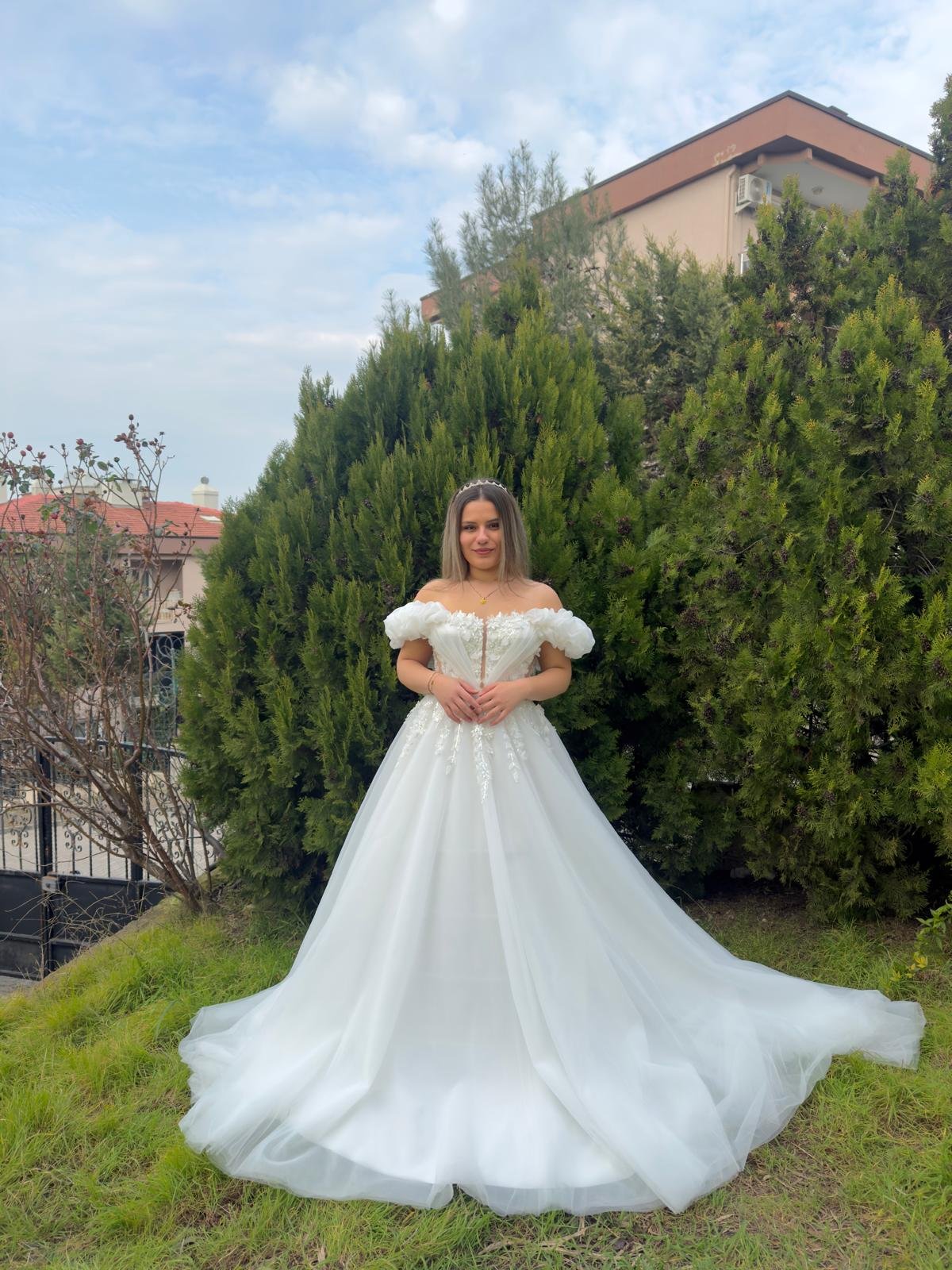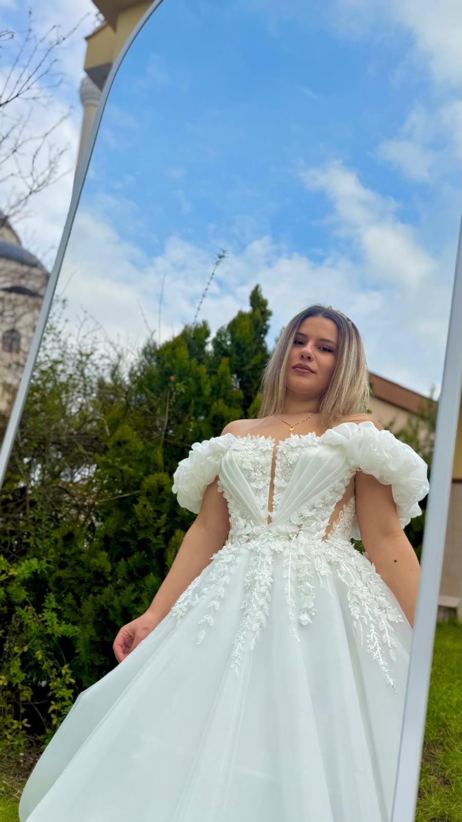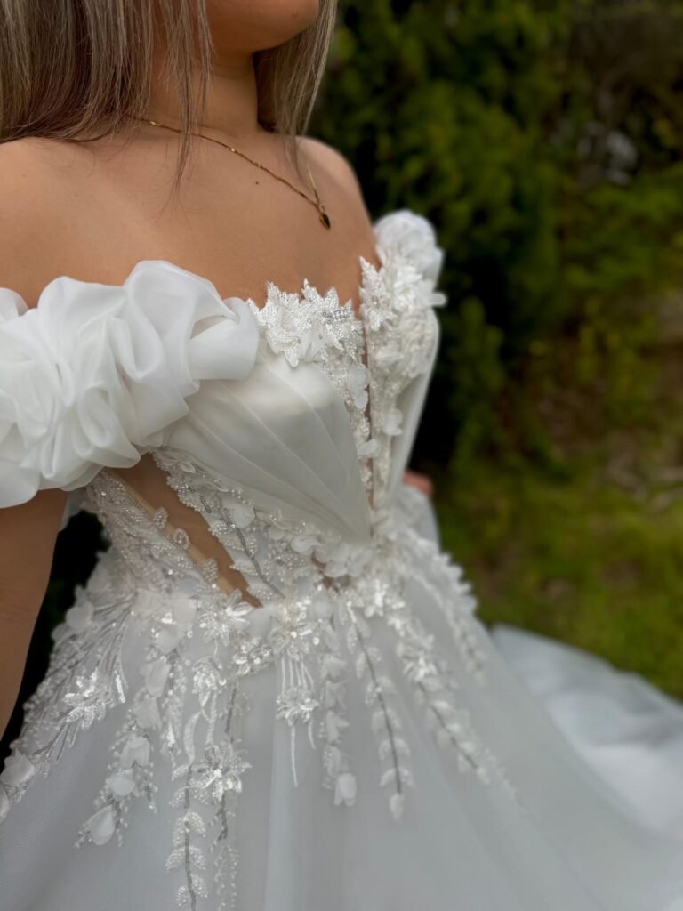 LUNA | KALP YAKA DÜŞÜK OMUZ DETAYLI PRENSES GELİNLİK